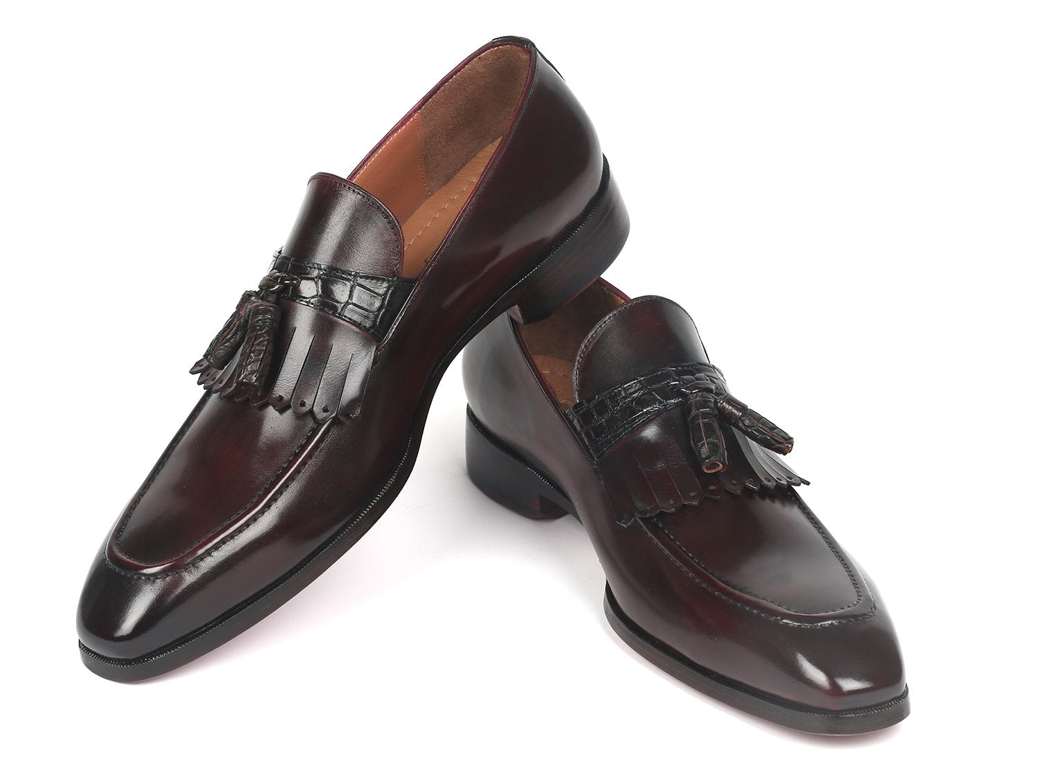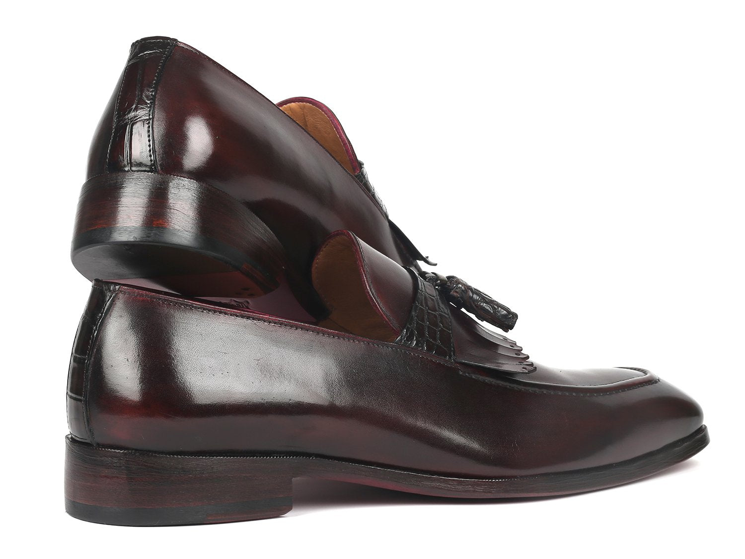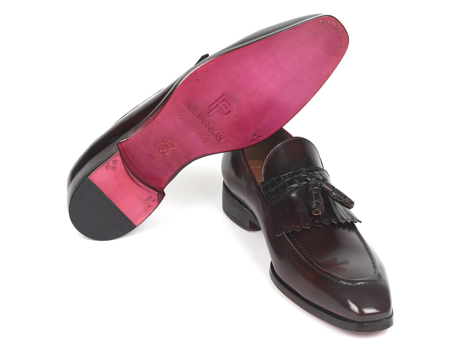 Paul Parkman Dark Bordeaux Calfskin & Genuine Crocodile Tassel Loafers (ID#5155-BRD)