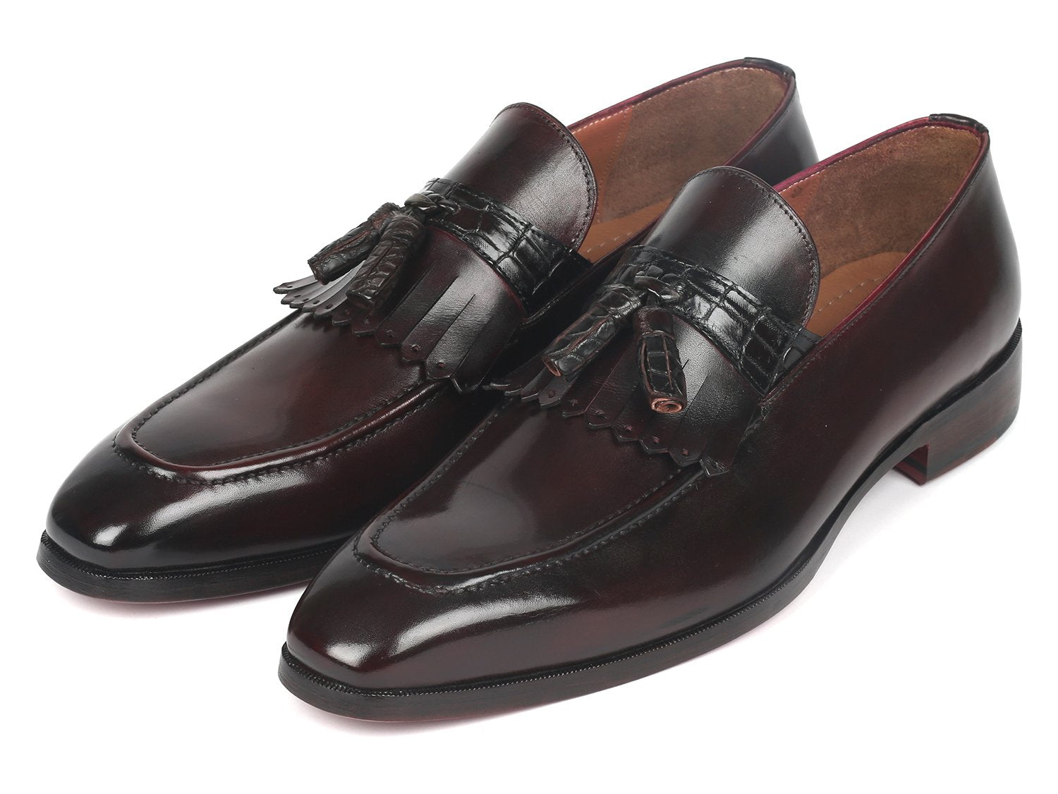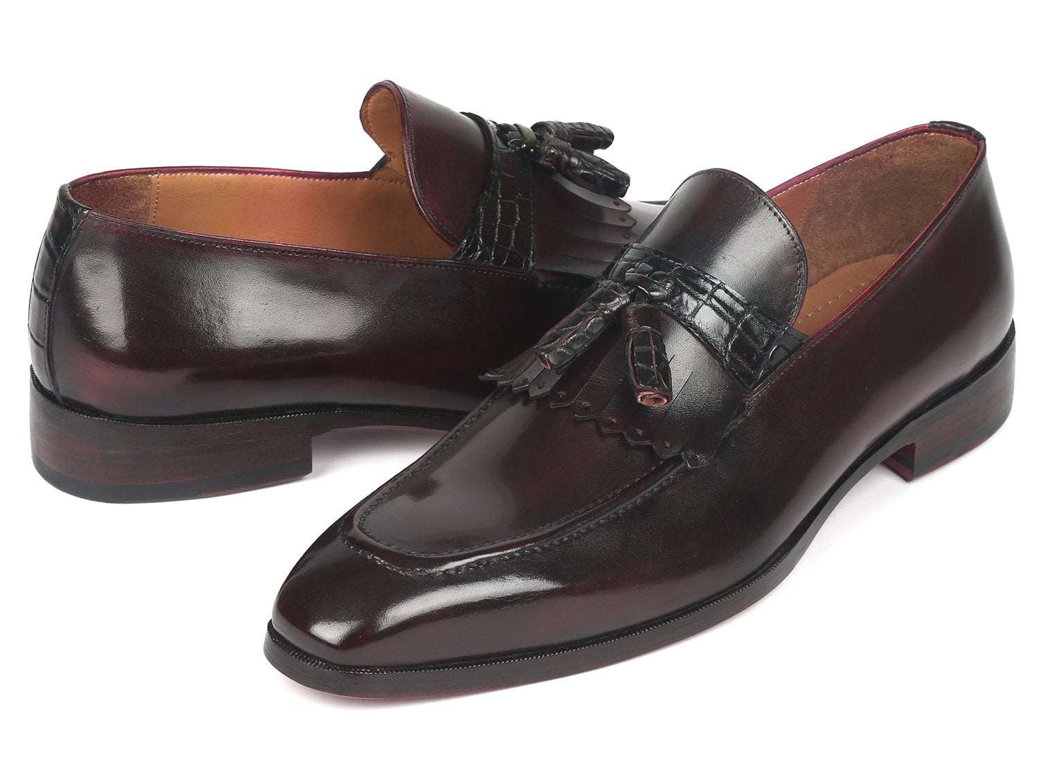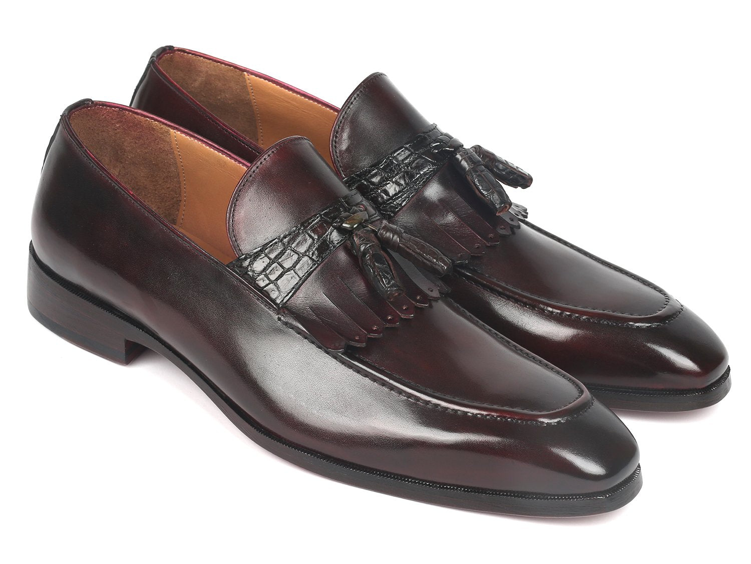 Paul Parkman Dark Bordeaux Calfskin & Genuine Crocodile Tassel Loafers (ID#5155-BRD)