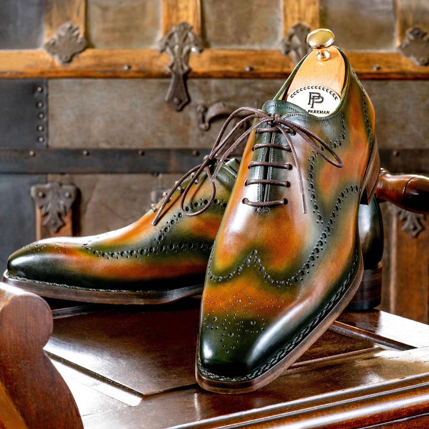 Paul Parkman Goodyear Welted Men's Brown & Green Oxford Shoes (ID#081-036)