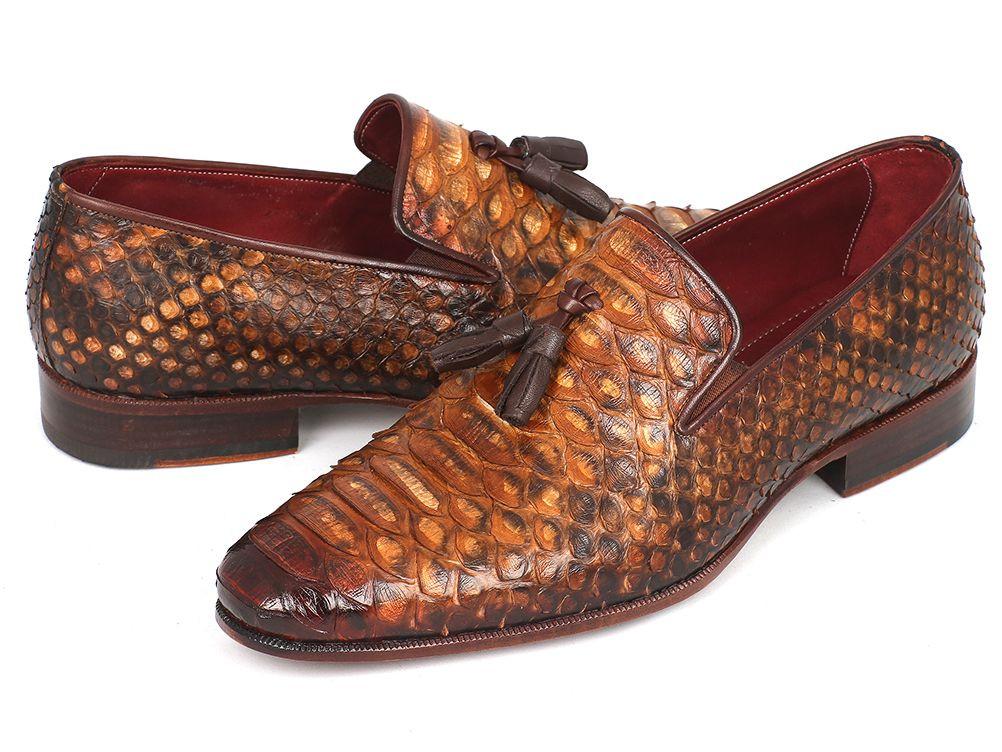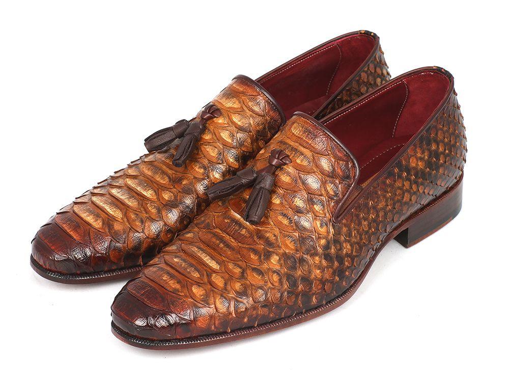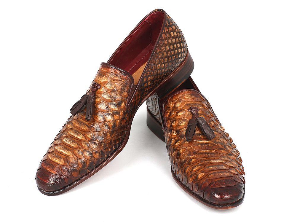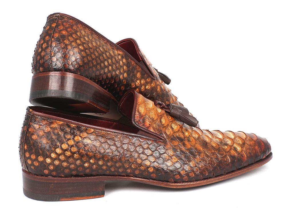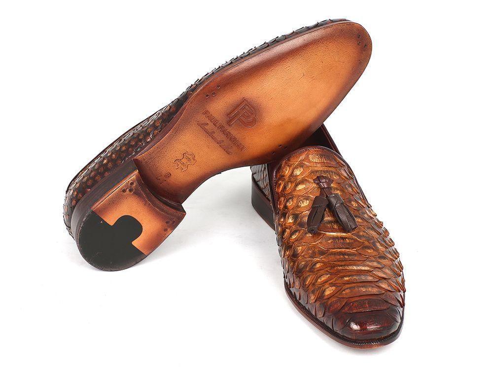 Paul Parkman Men's Genuine Python Tassel Loafers Camel (ID#26CML75)