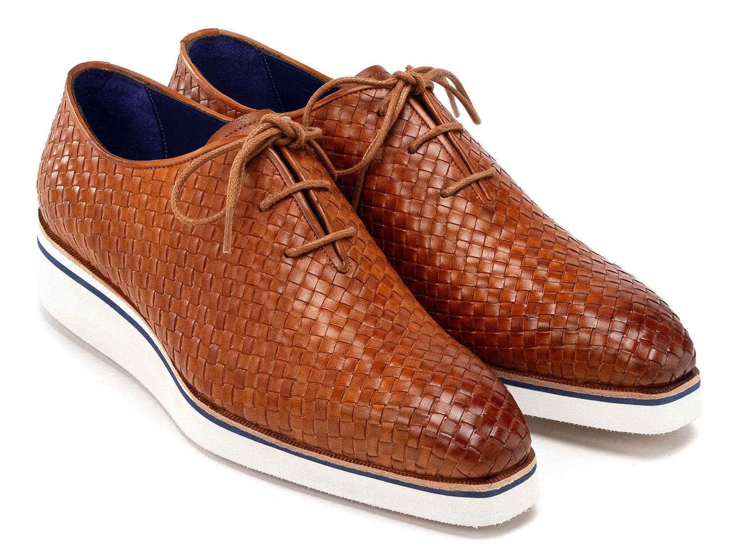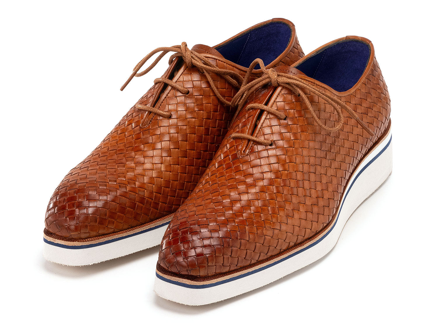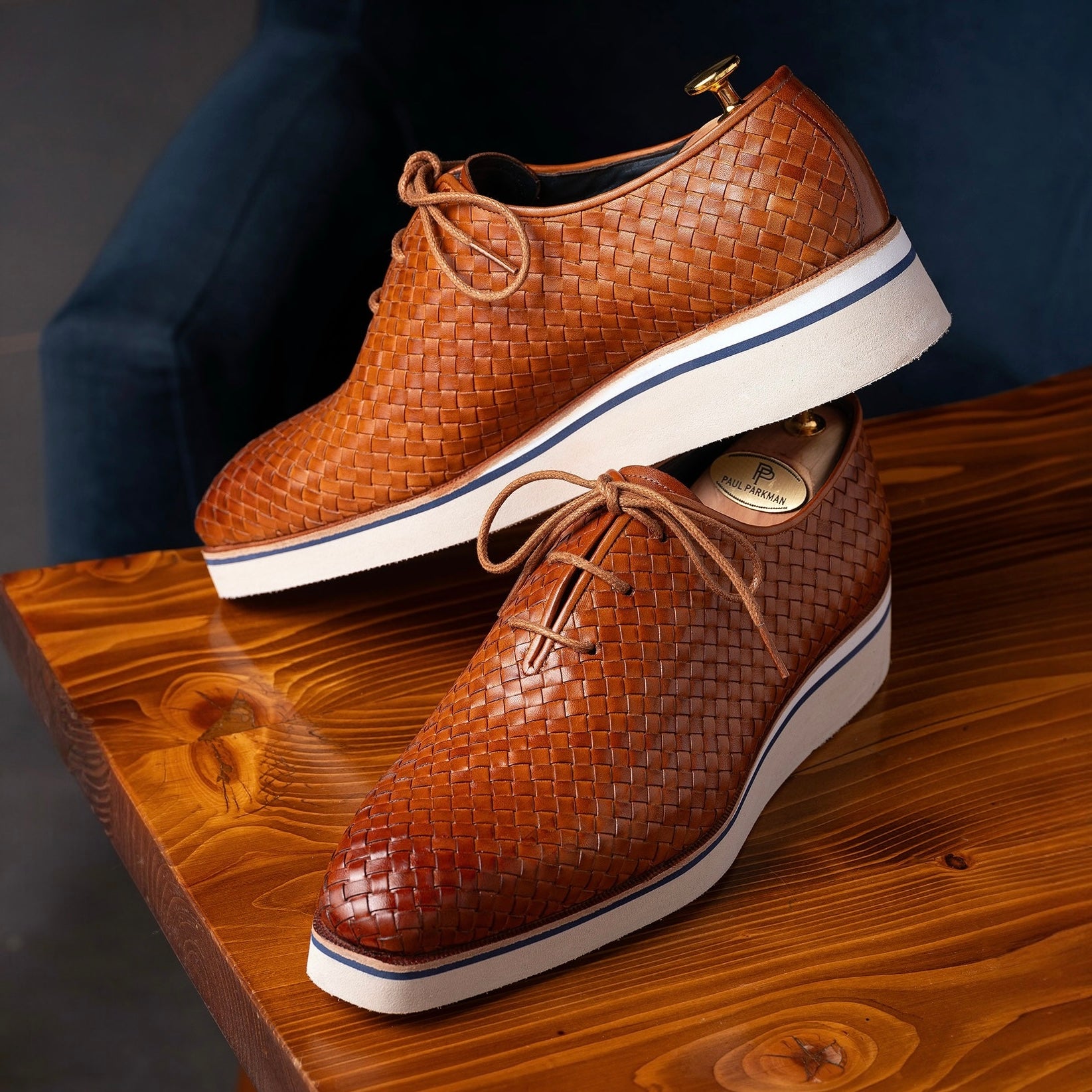 Paul Parkman Men's Woven Leather Smart Casual Shoes Camel Brown (ID#182-WVN-CML)