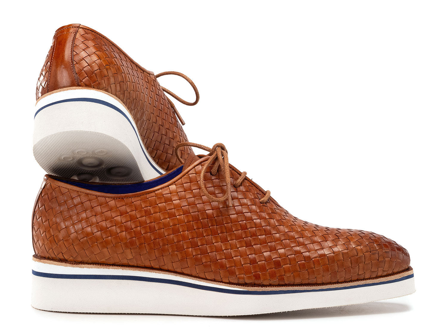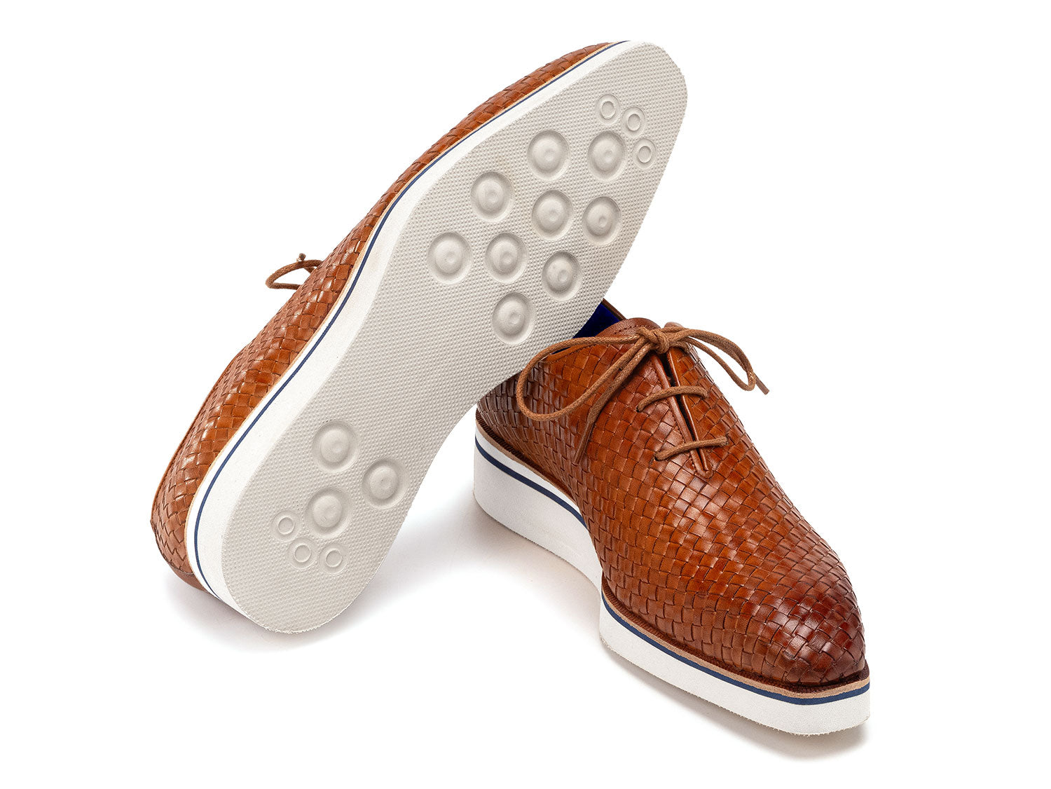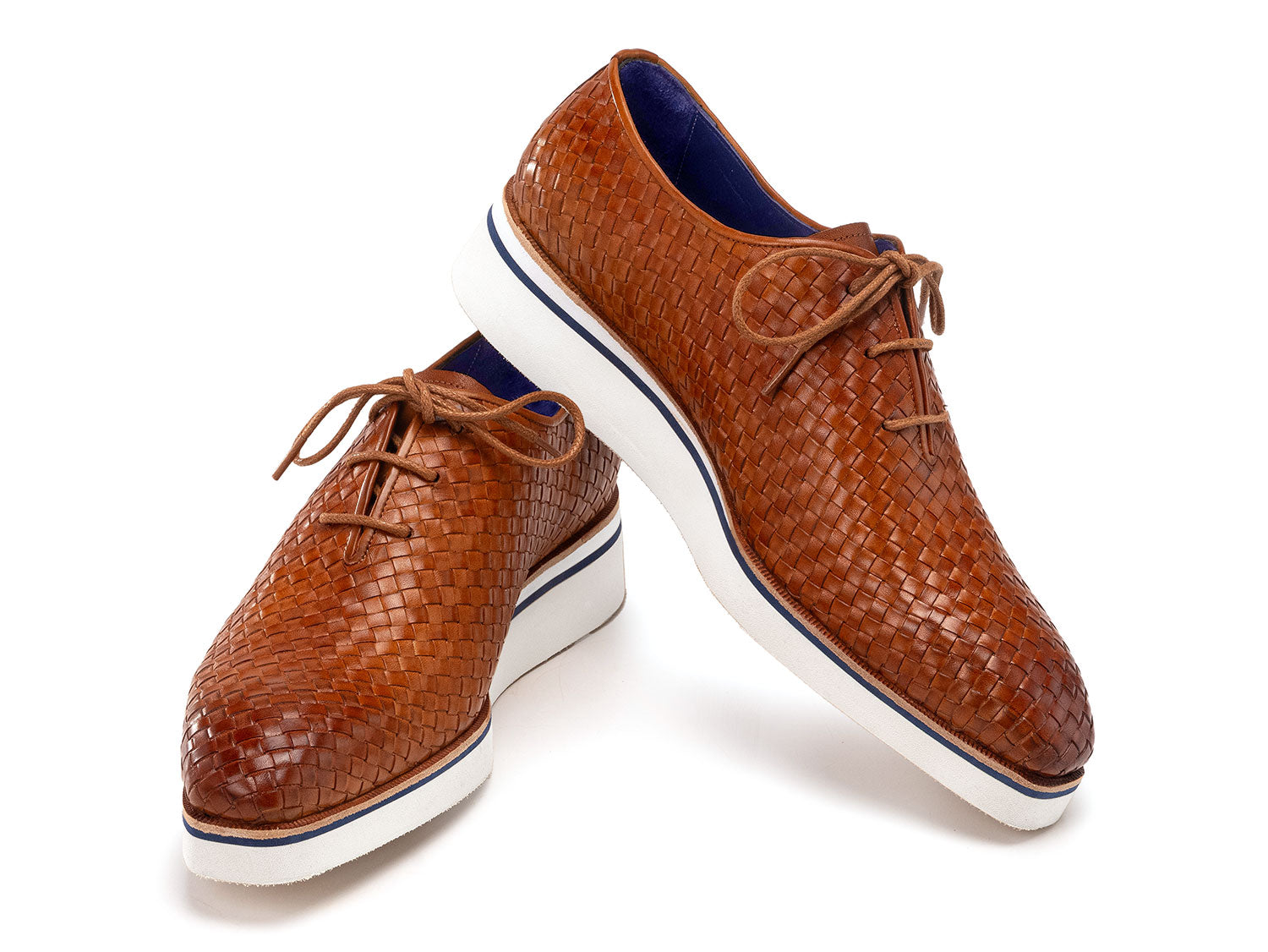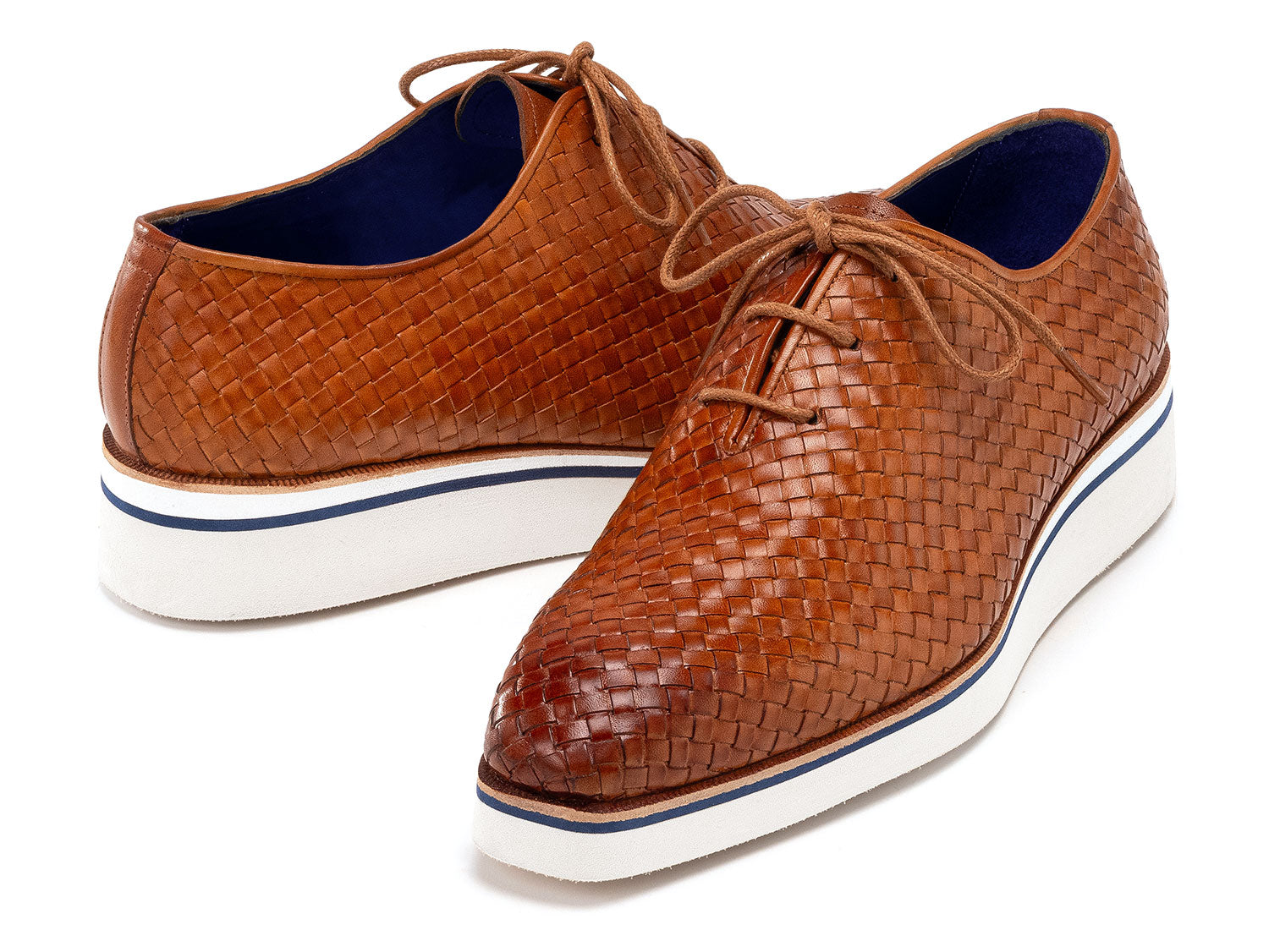 Paul Parkman Men's Woven Leather Smart Casual Shoes Camel Brown (ID#182-WVN-CML)